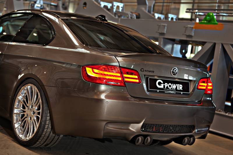 擁有如此強悍的動力表現,G-Power BMW M3 Hurricane RS在外觀上卻展現出極有氣質、富有貴氣的素雅模樣,點綴性地加裝前下巴,而換裝的碳纖維引擎蓋與後廂蓋則是成功地瘦身約11kg的重量。底盤方面,為了配合經常性的高速巡航,G-Power換裝型號Clubsport的高低軟硬可調避震器與G-Power Silverstone Diamond電鍍輪圈搭配前255/30R20、後295/25R20的Michelin Pilot Super Sport高性能跑胎。煞車方面則是使用前六、後四活塞煞車卡鉗搭配前396mm、後380mm的煞車碟盤,完整強化原本僅背負420HP的原廠底盤,可謂如虎添翼,G-Power怪獸又一台!
