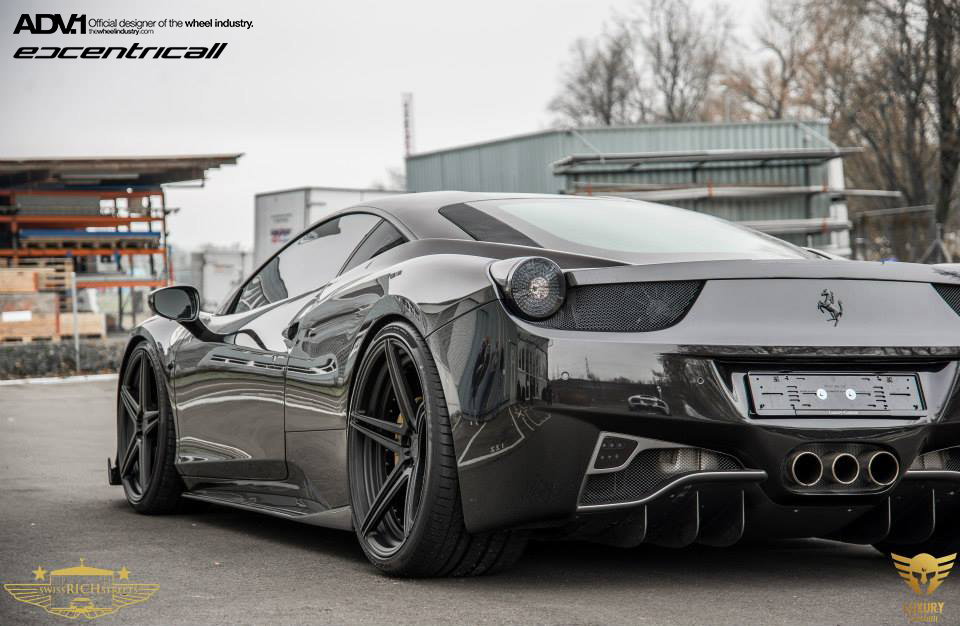 人們習慣將黑色車身、黑色輪圈、整部車黑得徹底的改裝方式稱為black on black,那麼眼前這部來自義大利摩德納(Modena, Italy)的超級跑車Ferrari 458 Italia則算是將black on black精神貫徹得頗到位。