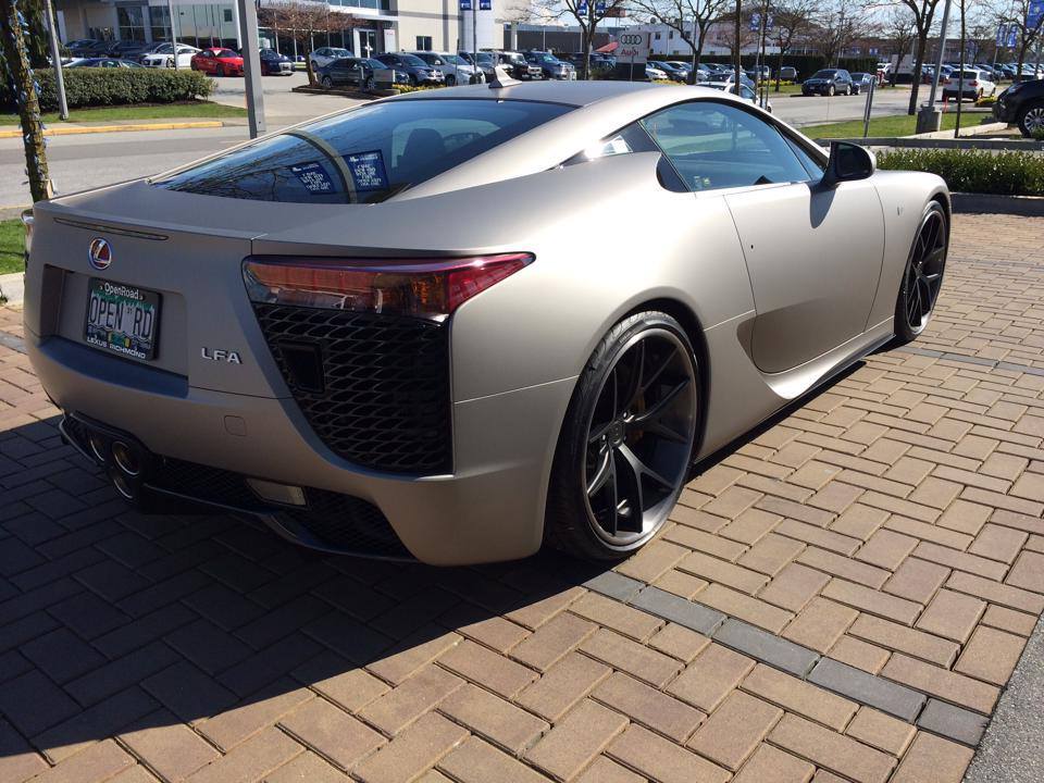 溫哥華SR Auto以前就已經與Lexus合作過,也改造了不少的Lexus車款,但是相較於這一輛,他們似乎信心滿滿地要在展上拉抬全場最高人氣,為了能夠達成這項成就,SR團隊首先將其外觀改為消光的銀色,那精緻的金屬感展現出LFA之大器,從那不閃耀的低調漆面中,我們看見了最不一般的耀眼光芒,除此之外,其腳上所裝的也是來自日本的輪圈,能夠與LFA搭調的恐怕也只有PUR LX04輪框了,前21×9”後21×13”,深邃鐵灰的輪圈有如吸引人們目光的黑洞,令人完全無法閃躲其致命吸引力。