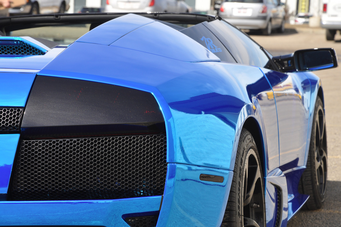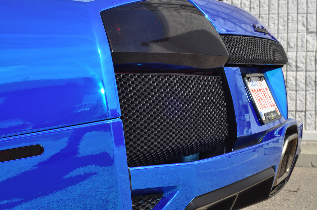 今天帶給各位一部由加拿大改裝廠ZR Auto所操刀的Lamborghini Murcielago LP640-4 Roadster敞篷超級跑車,步出義大利原廠時本為珍珠白色塗裝,隨後被貼成耀眼無比的電鍍藍色貼膜,而吸睛度破表的它也在這陣子舉辦的艾德蒙頓車展(Edmonton Auto Show)當中,與同樣由ZR Auto所提供的Edo Competition Ferrari ZXX、Maserati MC12 Corsa與知名改裝廠Heffner Performance雙渦輪增壓Lamborghini Gallardo等經典超跑一起出席。
