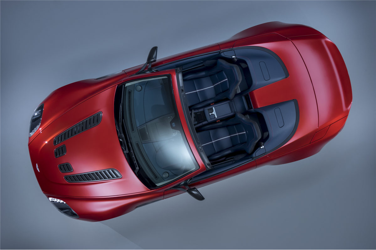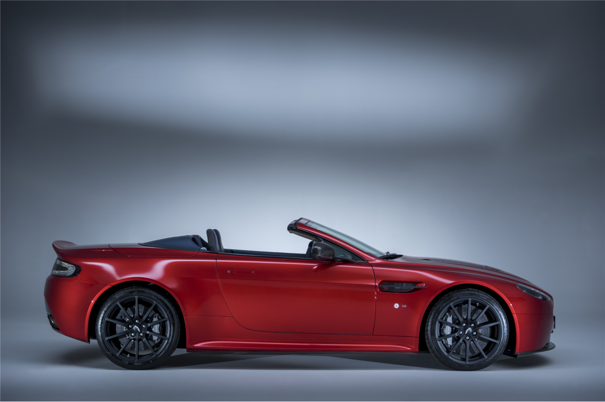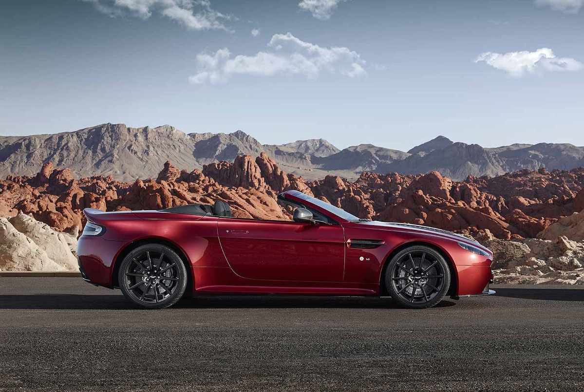 Aston Martin選擇以一部採用Diavolo Red金屬紅色塗裝的Aston Martin V12 Vantage S Roadster作為首發展示車,配著的是燻黑版本輪圈、車身同色水箱護罩與深藍色內裝皮革等部品,另外也提供銀色版本輪圈、未上色水箱護罩與各式顏色皮革讓準車主選購,而敞篷版本的V12 Vantage S Roadster在開篷後所展現的優美曲線,實在是雙門車型所難以取代的。