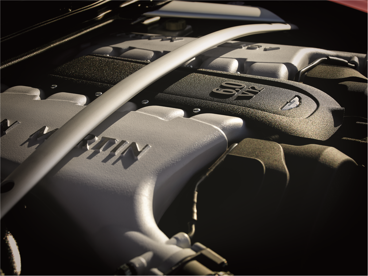 動力部分,與雙門版本Aston Martin V12 Vantage S相同,搭載源自於Vanquish上、代號AM28的5,935cc自然進氣V12引擎,透過電腦程式更新、凸輪軸更換與進氣系統強化等步驟,將最大馬力提升至573HP,同時能在轉速5,750rpm時提供63.2kgm的最大扭力,輔以全新Sportshift III七速自手排變速箱,百里加速成績為3.9秒,極速可達322km/hr,表現超越售價更高的Vanquish Volante,成為Aston Martin旗下最速量產敞篷車款!