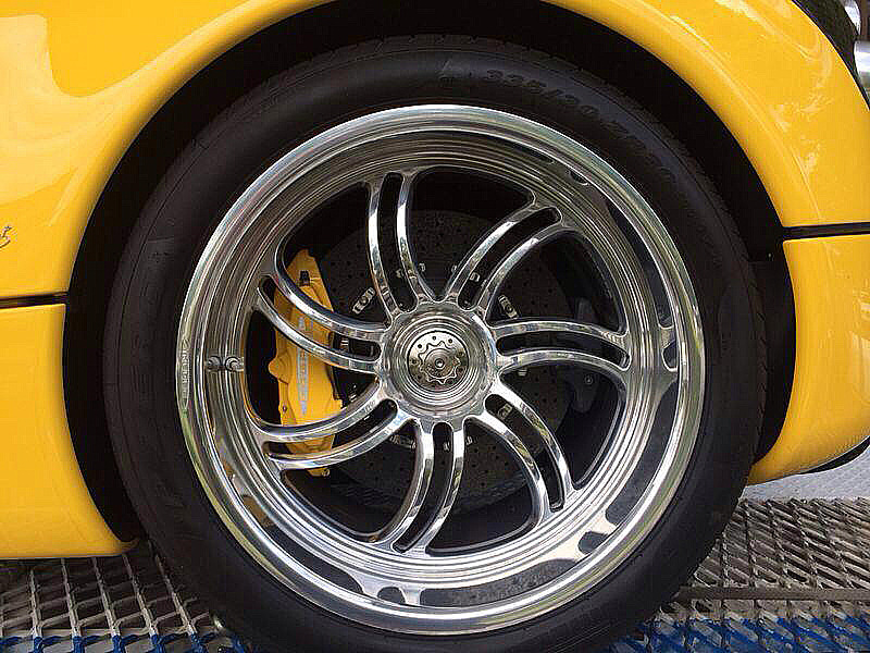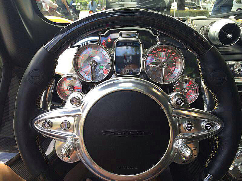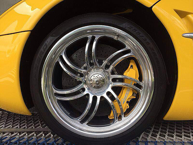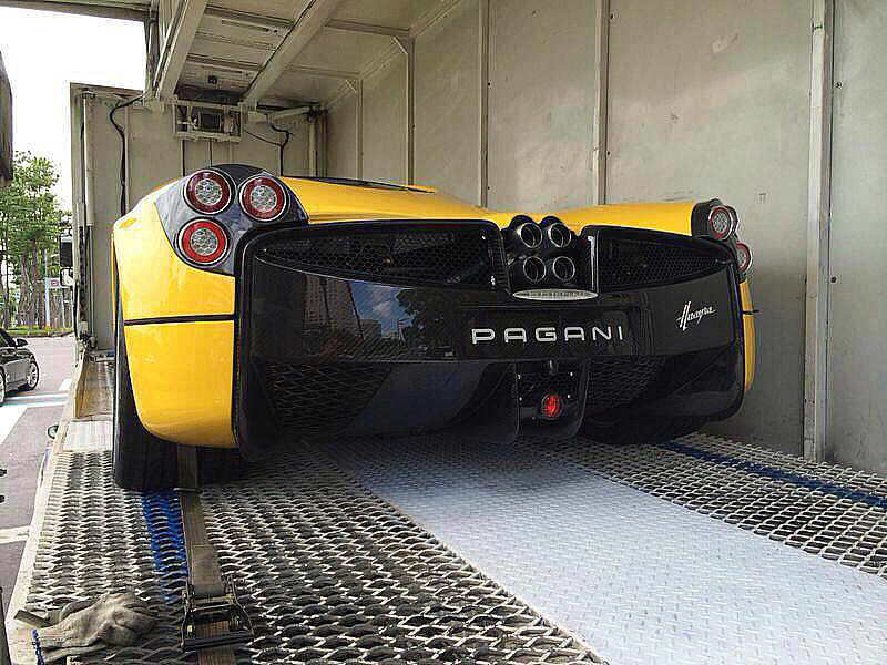 其實,早在今年的日內瓦車展(Geneva Motor Show)當中,該部黃黑雙色Pagani Huayra就曾代表Pagani出展,其車身上的碳纖維紋路僅於前下巴與後下擾流板等部分顯現,跟其餘曝光過的Pagani Huayra相比,外觀方面相對低調許多,而搭配電鍍拋光處理的鎂合金輪圈與黃色煞車卡鉗,也使得Huayra優美的車身線條更有立體感,別具一番風味。動力部分,Pagani Huayra搭載代號M158、來自Mercedes Benz AMG的6.0升雙渦輪增壓V12引擎,由德國阿佛特巴(Affolterbach, Germany)最有經驗的工程師們調校,最大馬力可達720HP,扭力峰值可達102kgm,採用七速序列式變速箱與後輪驅動配置,百里加速由於後輪嚴重打滑而為看似沒有很出色的3.3秒,但極速高達370km/hr,強悍程度可見一班,在台灣能讓它盡情發揮的地方應該不多。