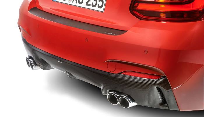 外觀部分,AC Schnitzer提供碳纖維前下巴、水箱護罩、碳纖維後視鏡蓋、後鴨尾翼與後下擾流板等部品,其中前下巴與後下擾流板僅適用於配有原廠M Sport空力套件的BMW F22車型。