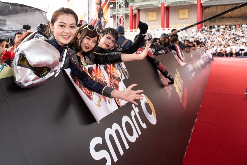 隨著 Mercedes-Benz S-Class 緩慢駛入會場紅毯彼端,在全台無數影迷的忘情吶喊聲中,保羅路德與伊凡潔琳莉莉從容且親切地一路迎接影迷們的熱烈歡迎,而一旁「#smart讓蟻人FUN超大展車台」也同樣吸睛。