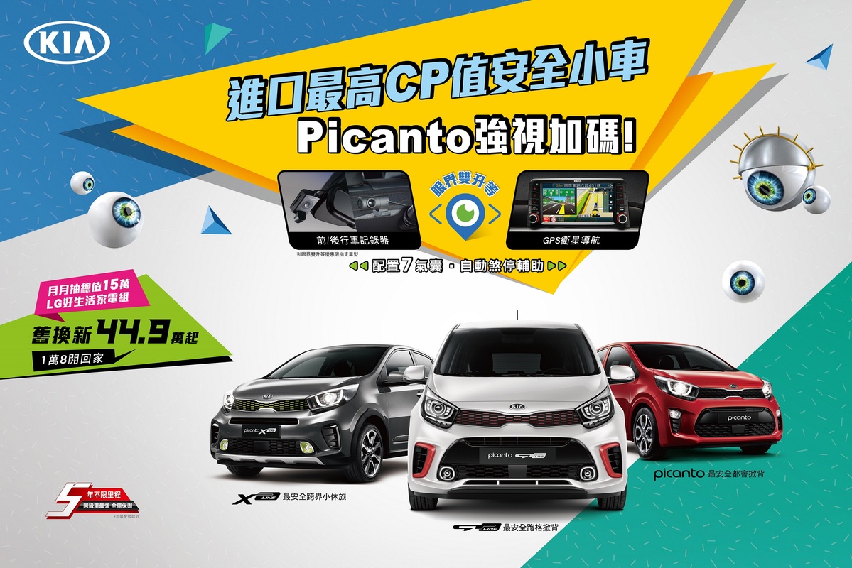 KIA總代理森那美起亞汽車進軍台灣市場以來,秉持 「The Power to Surprise」 的品牌精神,提供消費者最優質的用車品質,加上體貼消費者荷包的用心,逐漸打開台灣市場的能見度。2019年6月森那美起亞隆重推出 「KIA好試乘駕 LG抽好禮成家」 活動,自6月1日起到7月31日止,至KIA全台展示中心試駕KIA全車系任一車款,即可獲抽獎資格,有機會成為價值15萬元的LG好生活家電組得主。同時,史上最強國產MPV Carens 5/7人座亦加碼推出超驚喜四重優惠,搭配政府貨物稅舊換新政策,最低只要69.9萬起就可入主,本月購買最高C/P值安全小車Picanto,指定車型及出廠年份亦享免費升級GPS衛星導航系統及前後行車紀錄器,入主全新世代的KIA最佳時機就是現在。