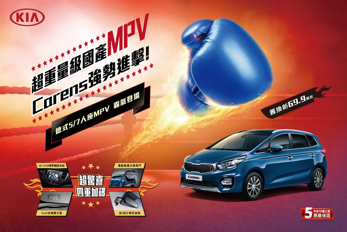 本月試駕KIA車款不僅有機會抽中大獎,立即購車更享有多重優惠。無論周間通勤、周末出遊皆是最佳選擇的最強國產MPV(轎式休旅)Carens,本月享有1.8萬超低頭期款優惠理財方案,購買指定車型立即升級四重優惠:電動感應式尾門、3D AVM環景輔助系統、前後行車紀錄器、HUD抬頭顯示器,輕鬆入主油耗、空間、安全、動力與科技全贏的Carens;安全配備傲視同級,市場好評不斷的Picanto,全車系配合政府貨物稅補助舊換新政策,最低只要44.9萬起就可以輕鬆開回家,亦可搭配1.8萬超低頭期款理財方案,晉升有車階級不是夢,本月購買指定車型及出廠年份Picanto車款,還能免費升級GPS衛星導航系統及前後行車紀錄器,最高C/P值安全小車非Picanto莫屬;市場唯一百萬內即可入手的柴油動力型格跑旅All-New Sportage,這個月也為潛在車主推出貼心的購車理財方案,消費者可依據自身規劃選擇60萬30期0利率或1.8萬超低頭款方案,坐擁屢屢榮獲北美及歐洲各地J.D. Power新車品質與品質可靠度第一名的KIA全新世代車款,輕鬆無負擔。