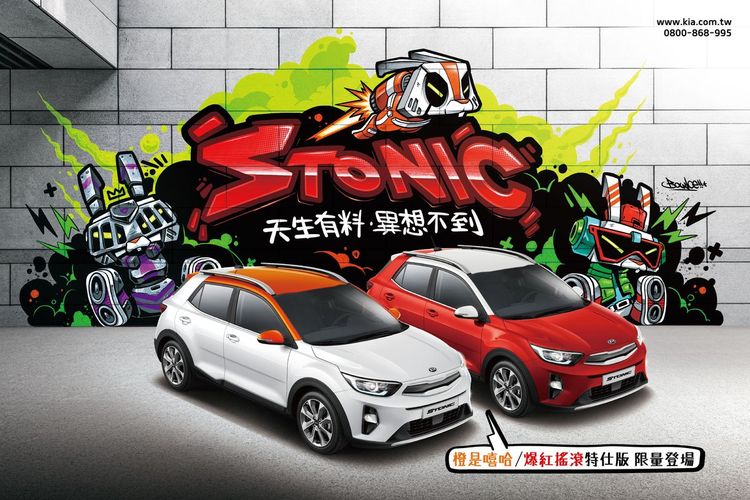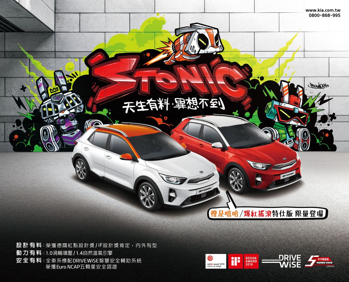 KIA小型跨界休旅Stonic自法蘭克福車展首亮相以來,即以動感的時尚外型吸引眾人目光,更一舉拿下包含德國紅點設計大獎(Red Dot)、iF產品設計獎等殊榮。除了出色外型,KIA Stonic亦是國內KIA首款全車系標配DRIVE WiSE智慧安全輔助系統的車款,搭配1.0升渦輪增壓缸內直噴及1.4升自然進氣引擎兩款動力,提供消費者不同選擇,一上市即成為同級距中設計、動力、安全一應俱全的小型跨界休旅教主。為提供消費者更個性化的選擇,KIA總代理森那美起亞汽車特別限量引進Stonic酷玩新潮色特仕版,以星鑽白車色搭配橙蜜橘車頂,化身為路上最耀眼的「橙是嘻哈」,與豔麗紅車身配上星鑽白車頂成為回頭率最高的「爆紅搖滾」,炫目搶眼的雙車色跳色搭配,完美演繹KIA Stonic獨具個性,且不容被忽視的特質。除擁有亮眼雙色外型,KIA Stonic酷玩新潮色特仕版擁有D-Cut跑格化皮質包覆可調式方向盤、專屬橘色烤漆內裝飾板、專屬橘色縫線人體工學原廠雙色皮布椅,以及橘黑對比的飾板,大膽搶眼的色彩對比,恰如其分融合在KIA Stonic的設計中,傳達KIA Stonic「天生有料、異想不到」的驚喜。