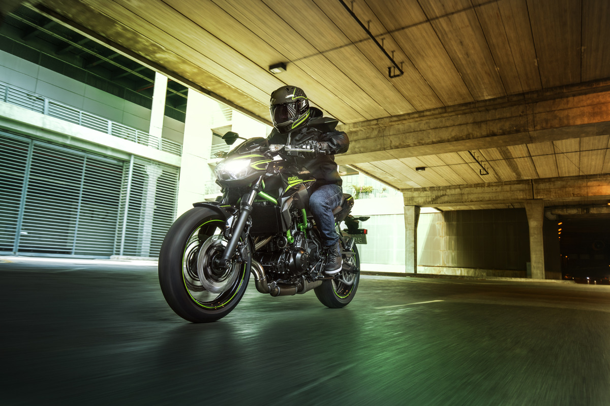 在換上了新款Dunlop Sportmax Roadsport 2的輪胎之後,使其原本輕量化的車身更加靈巧和易於操控,而重新設計的雙座墊則提高了駕駛者與乘客的舒適度,Z 650引擎所帶來強勁的中低轉速扭力為其一大特色、使得動力輸出上更加容易掌控,讓騎士在城市街道的上班通勤時光當中,能充分享受Z 650所帶來的愉悅和順暢的駕馭感受。