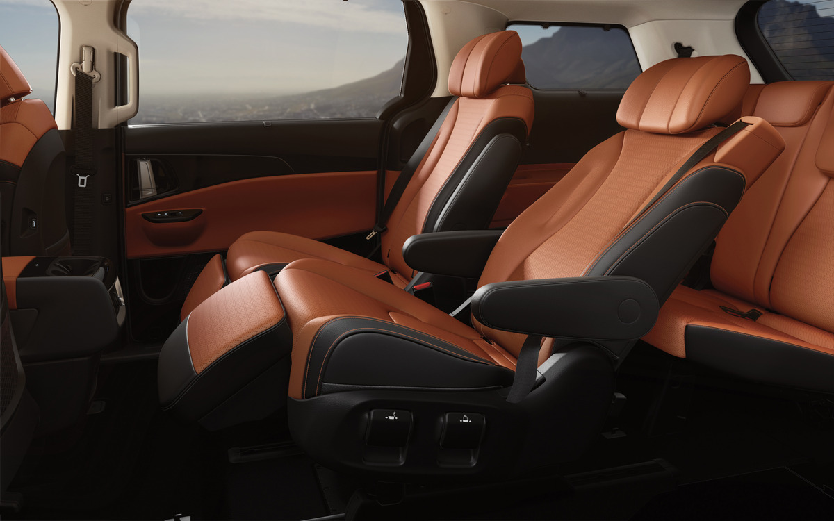 除了標準的7人座/8人座規格之外,KIA All-new Carnival的頂級7人座車型,除提供同級唯一3款雙色內裝選擇(註2),讓喜歡打造個人品味的車主有更多樣的選擇外,第二排空間更特別設置Ottoman尊爵頭等座椅,不僅具備電動調整靠背、通風與加熱功能,更可輕鬆地一鍵操作變換成貼心的放鬆模式,讓乘客享受有如陸地頭等艙般的一流的舒適乘坐體驗。此外,頂級7人座車型更配備有專屬電動雙景天窗,可開啟的第二排電動天窗,讓前後座乘客同享更寬闊明亮的車室空間;而頂級7人座車型獨有的BOSE環繞音響附12具揚聲器,All-new Carnival從觸覺、視覺到聽覺,都以最貼心的舒適款待每位乘客。