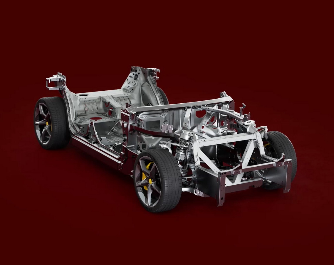 與法拉利之前推出的四座跑車相比,新車的底盤在擁有更大尺寸的同時,卻變得更加輕盈。更為出眾的抗扭剛度(+30%)和橫梁剛度(+25%),是進一步提升NVH表現和駕乘舒適度的核心所在,可有效減少與吸收因路面不平而產生的顛簸感,並保障卓越的結構完整性,使旅途平順靜謐。