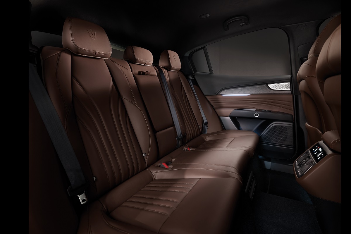 為提升實用性,全新Grecale取消傳統排檔桿設計,改為雙觸控螢幕中間的實體控制按鍵,中央鞍座則增設附有對開式蓋板的置物空間與手機無線充電裝置(GT車型選配),車門把手亦由一指輕鬆控制的電控按鍵取代;透過愜意寬敞的後排乘坐空間,搭配具備專屬6.5吋觸控面板的三區恆溫空調系統、以純粹美聲著稱的義大利Sonus Faber頂級音響系統,以及GT車型選配的環繞氛圍燈,帶來超乎期待的沉浸式奢華享受。