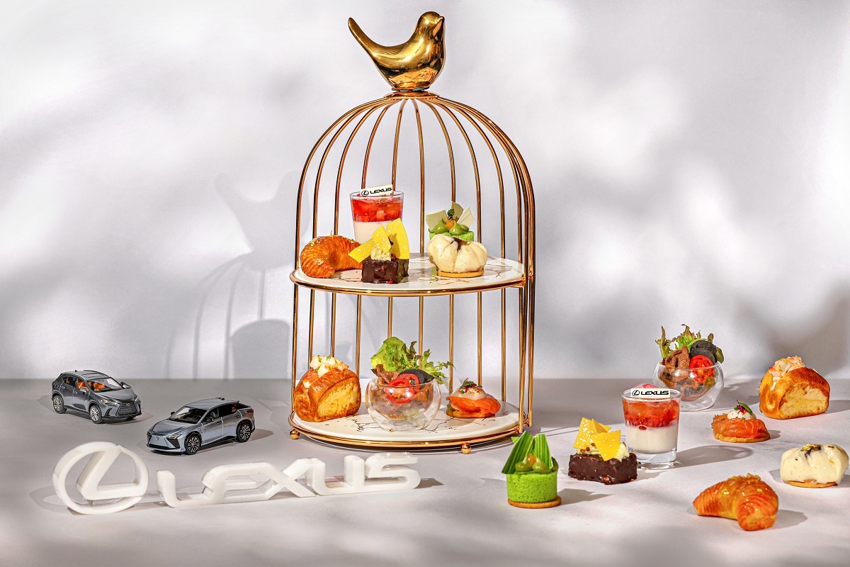 擔綱台北晶華酒店甜點行政主廚的羅倫,本次延續其純正法式甜點料理手藝,搭配Lexus品牌元素與LM奢華設計概念,創作多款經典甜品,為法式午茶注入日式純粹,打造具有五項甜品、三道鹹點的精緻日法雙重奏。其中融入多項日式食材,包含堆疊鹽漬櫻花的「櫻花香檳草莓杯」,搭配香檳凍及新鮮草莓點綴細緻奶酪;「抹茶百香果夏洛特」嚴選京都的抹茶粉製成,內餡填入糖煮熱帶水果,層次口感馥郁;而「白味噌焦糖爆米花香緹」以白味噌帶出獨特鹹味,外觀近似爆米花的香緹,由金箔裝飾十分別緻亮眼。另外,經繁複手法焙烤的「柚子榛果可頌」,酥脆外皮及微酸柚子風味內餡,亦展現主廚獨到的手藝;令人驚豔的「巧克力蛋糕佐山葵」,更是另類的將擁有些微嗆辣香氣的山葵風味香緹,為濃郁巧克力蛋糕作些許點綴,意外地在口中達到絕妙的平衡。