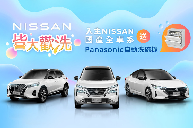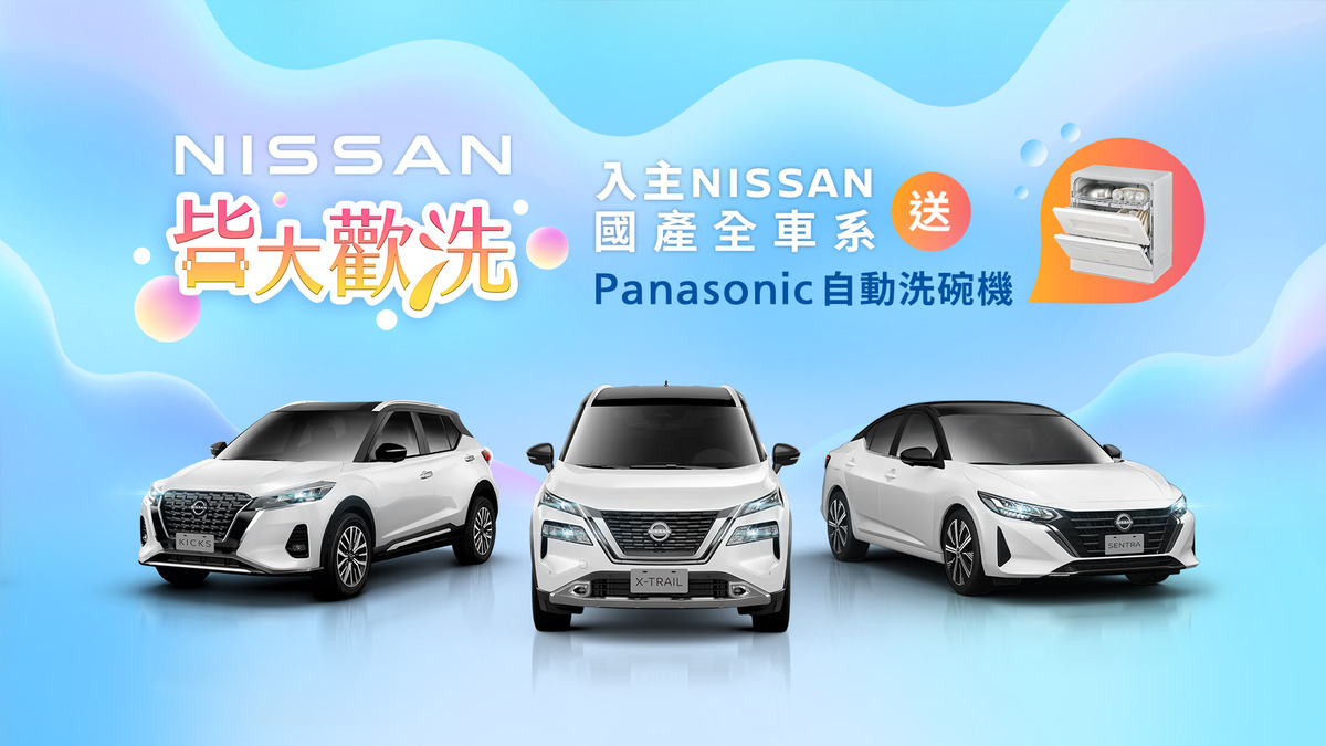 NISSAN重視消費者生活需求,持續提供滿足車主細節需求的優質車款,為回饋市場長期支持,自2024年6月1日起至6月28日止,限時推出「NISSAN皆大歡洗」購車優惠專案,活動期間內入主NISSAN國產全車系ALL NEW X-TRAIL、KICKS及ALL NEW SENTRA,即可獲得日本銷售第一Panasonic桌上型自動洗碗機(型號NP-TH4WHR1TW,市價21,900元)及新車延長保固(註1),讓車主輕鬆一鍵洗淨家中碗盤,把寶貴時間留給最重要的家人與更美好的事物。