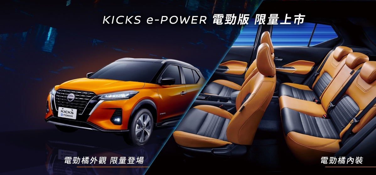 裕隆日產汽車宣布限量推出NISSAN KICKS e-POWER電勁版限量100台,以全新車色「電勁橘」搶眼上市,再享升級電勁橘雙色內裝不加價,提升產品質感以外,更能讓消費者沉浸在純電驅動帶來的駕馭感受及獨特體驗。
