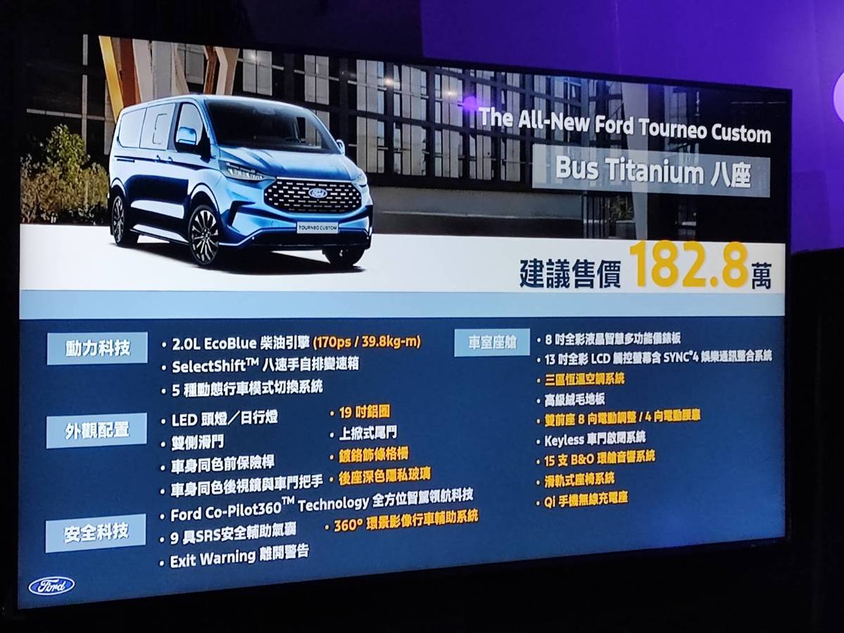 The All-New Ford Tourneo Custom建議售價