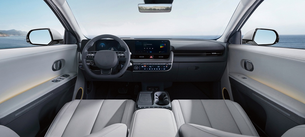 在內裝設計方面,The new IONIQ 5延續其極簡且科技感十足的車艙氛圍,導入雙12.3吋的數位座艙儀表並配備全新UI人機互動介面、全新Universal Island設計整合Qi無線充電與實體按鍵,讓駕駛在車內空間的使用上更加直覺就手;四門雙層膠合隔音玻璃的應用、優化的馬達噪音控制以及吸隔音面積的擴大,使車艙靜謐度大幅提升,無論是行駛於城市街道或是高速公路,都能確保駕乘者擁有最舒適的行路體驗。此外,豪華體驗更是全新升級,The new IONIQ 5配備全席記憶座椅,透過資訊娛樂系統螢幕控制所有乘客的座椅,第二排座椅也配備了電動滑移功能,提升全車的空間利用率。