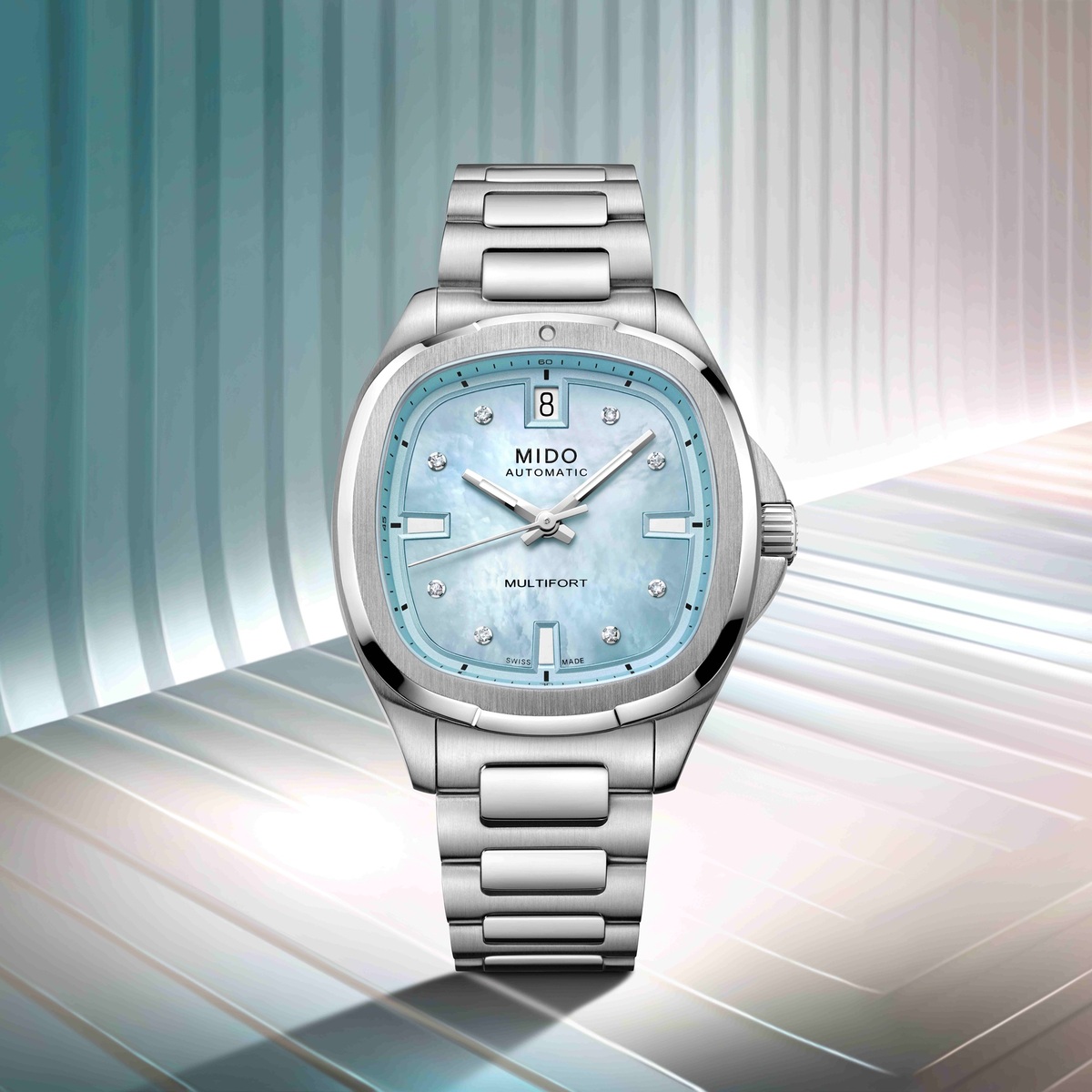 在這個充滿感恩與愛意的母親節, MIDO瑞士美度表溫馨推薦Multifort TV 35系列兩款腕錶,以珍珠母貝錶盤搭配鑽石時標,融合經典設計與現代工藝,為母親獻上最真摯的祝福。延續復古電視機造型的方形輪廓,Multifort TV 35猶如時光中的一幕幕美好回憶,成為獻給母親的心意首選。