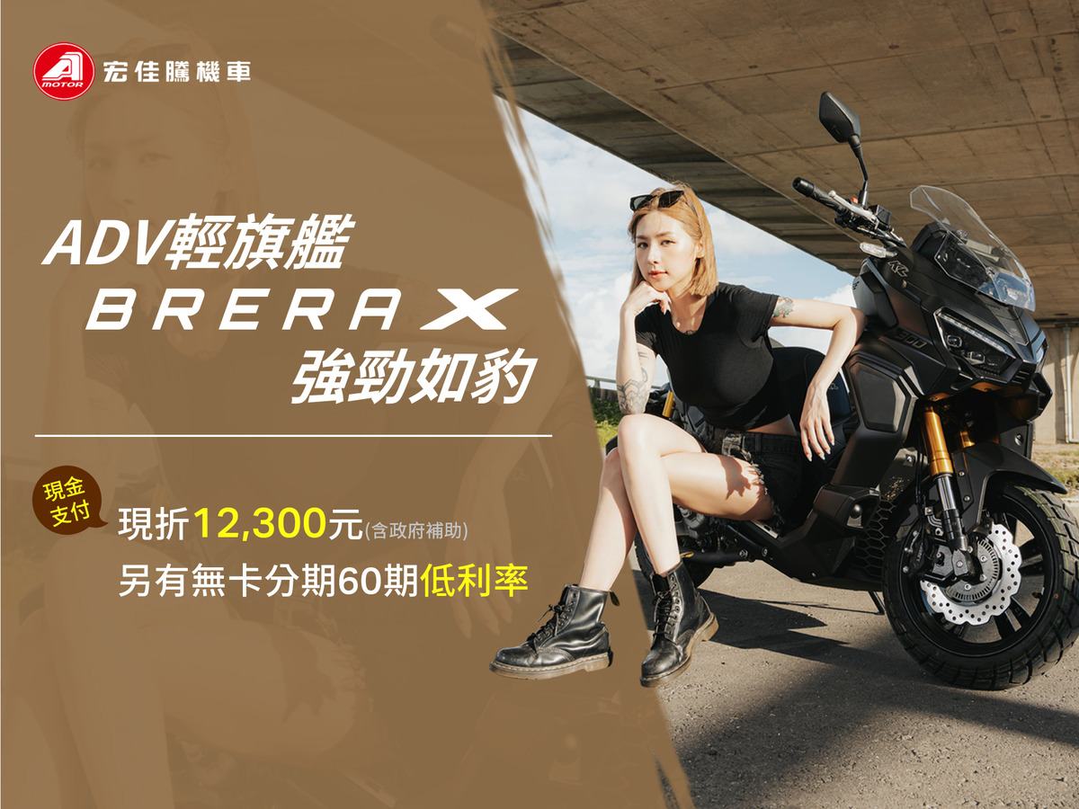 輕量鋼砲STR 300兼具白牌靈活與黃牌路權,現正祭出今年僅此一檔的破萬元優惠,購車現折8,000元,以現金入手再享5,000元折扣,另有無卡分期60期低利率方案供選擇,用最實惠的方式入手黃牌級距性能之選。其他熱銷車型亦同步推出多重購車方案,輕旗艦跑旅Brera X擁有ADV同級最強優勢,包含最小車身、最短軸距、最輕車重和最大油箱,加上強勁如豹的豐沛動力,成為CP值最高的跨界首選,即刻入主Brera X享8,000元現金購車折扣。此外,入手規則逃脫STR 300 GT或究極勁化STR 250可享現金購車5,000元優惠,出示學生證明文件再折2,000元,以上皆可另選無卡分期零/低利率方案;無論是初入職場的新鮮人,或是享受自由騎旅的準大學生,皆能輕鬆擁有心儀座駕。
