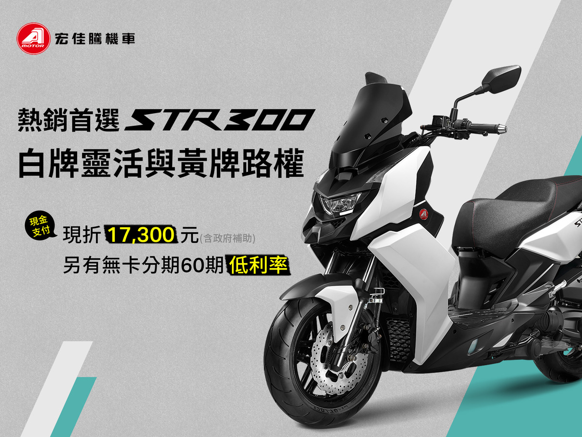 • 即日起至6月30日止,購買宏佳騰機車以下車款可享優惠方案,再享政府購車最高補助$4,300(相關補助辦法依中央及地方政府公告內容為準)。
