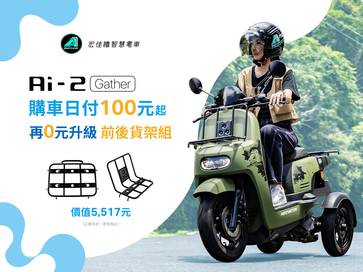 宏佳騰智慧電車6月購車方案火熱實施中,全車系享信用卡30期或無卡分期最高36期零利率方案,日付53元起入手全新電車。白牌車型如韓系跑旅EV.C1、叛逆潮車Ai-1 Ultra Belt、經典跑格Ai-1 Sport+、商務三輪Ai-2 Gather、美型電車Ai-3 Lite可享萬元購車金現折,Ai-2 Gather加碼贈專屬前、後機能貨架,實現環保綠能生活就趁現在。