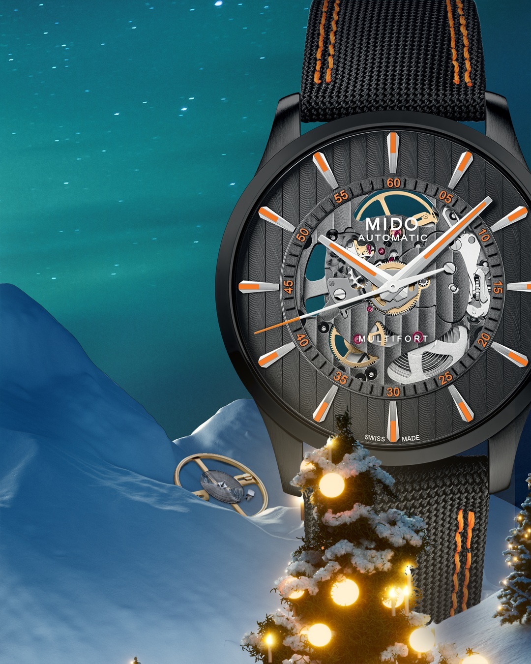 這款腕錶延續 MIDO 經典的 TV 造型錶殼,將品牌自 1973 年以來的代表性設計化為節慶中獨具個性的輪廓。Multifort TV Big Date