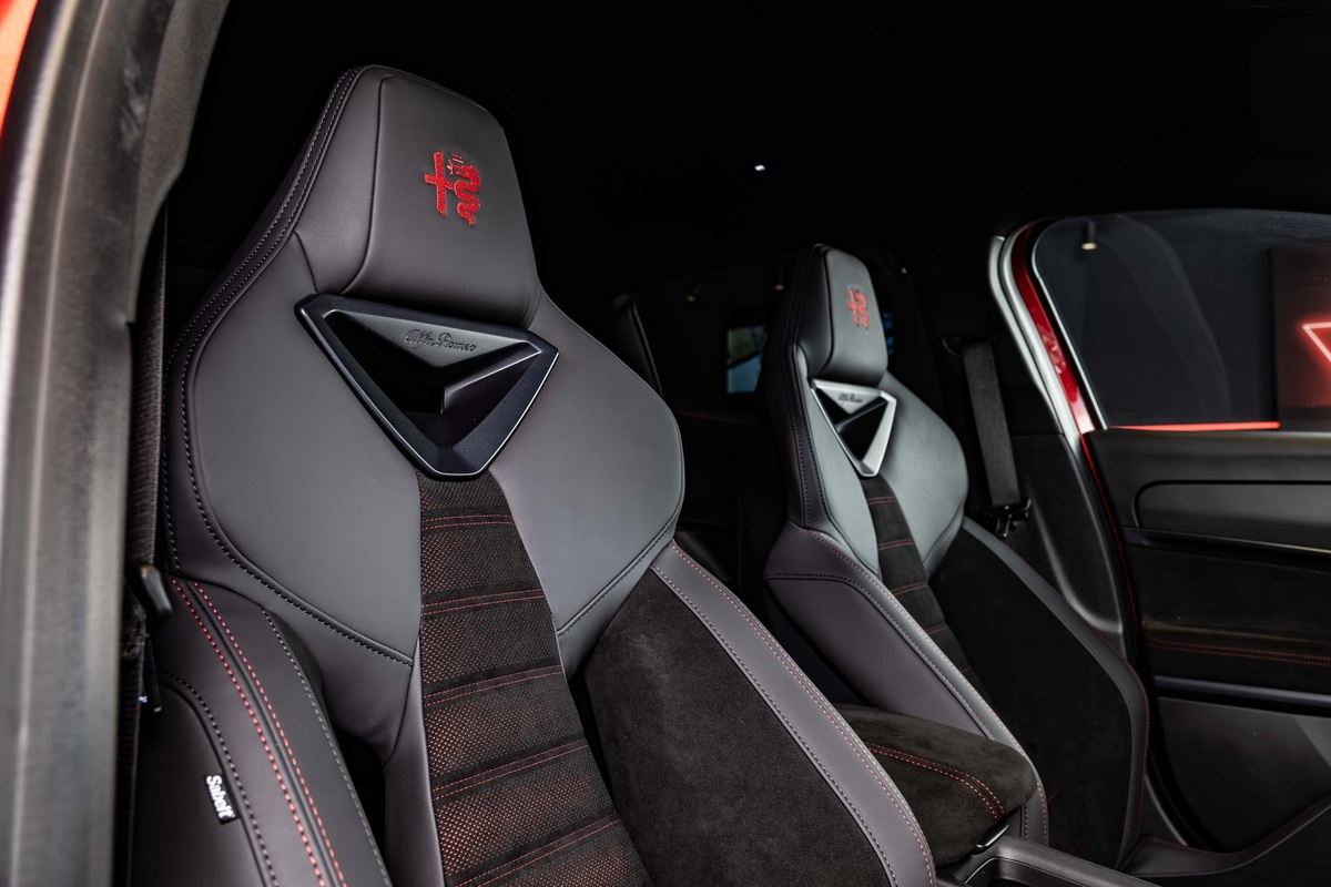 同時,Elettrica 280 Veloce 車型外觀配置 Veloce 專屬銘牌、20 吋專屬鋁圈與高性能電動車專用胎,並搭配專屬黑色 Scudetto 水箱護罩及運動化外觀套件,進一步形塑電動世代少見的義式性能風格。在座艙設定上同樣展現強烈性能導向,搭載運動型Sabelt® Alcantara 賽車座椅與運動化多功能方向盤,在高速行駛與激烈操駕時提供更出色的包覆性與操控回饋,讓駕駛即使身處純電時代,依然能感受到 Alfa Romeo 專屬的熱血駕馭本質。在純電世代中,Elettrica 280 Veloce 車型以完整底盤、制動與操控配置,重新定義「電動鋼砲」的性能標準。