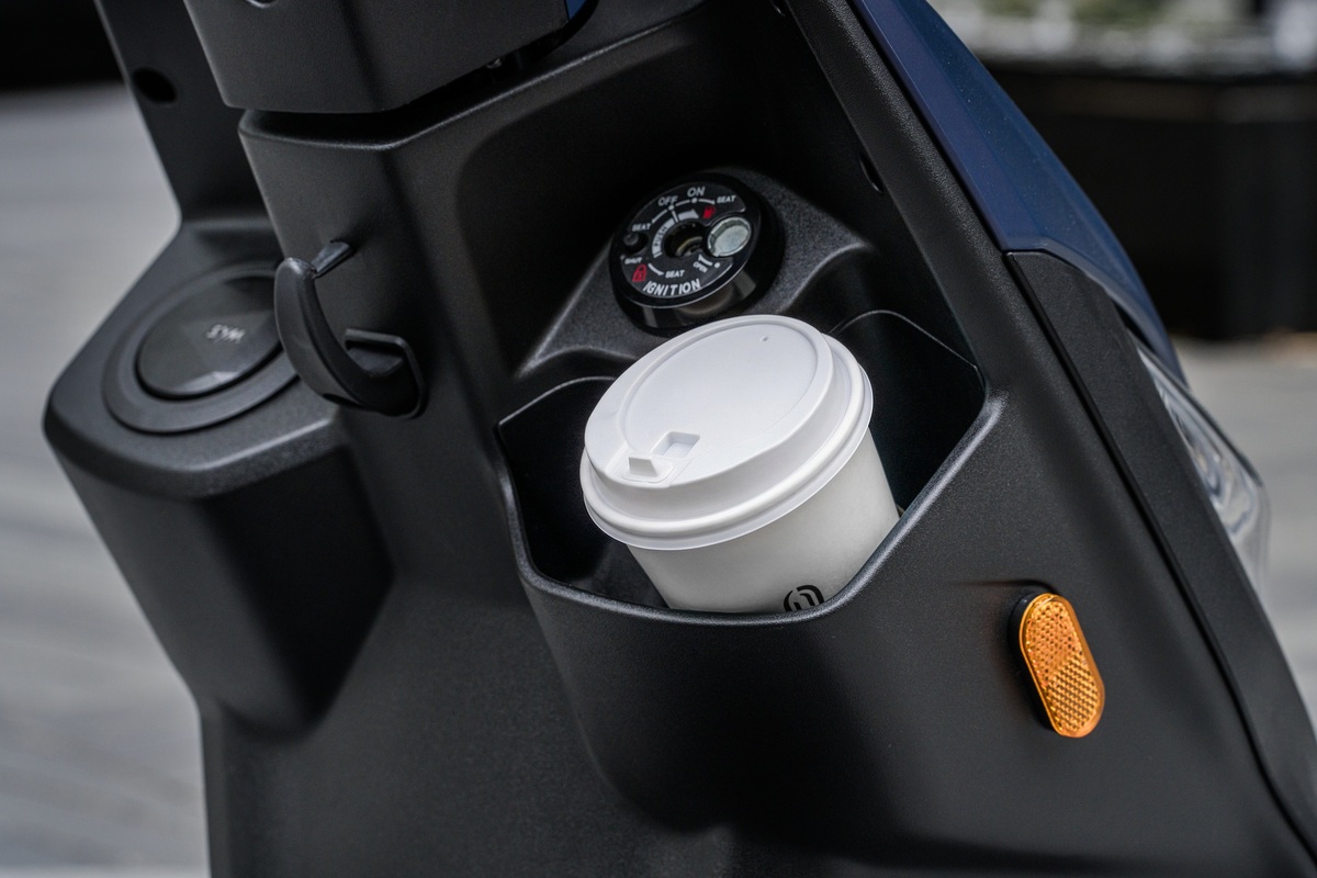 加大5.5L達37.5L 超大車廂空間更深更寬,可同時放入兩頂 3/4 安全帽、雨衣及包包外,大冬瓜也放得下!260mm 寬敞前置腳空間與可容納 700cc 飲品的前置物空間。