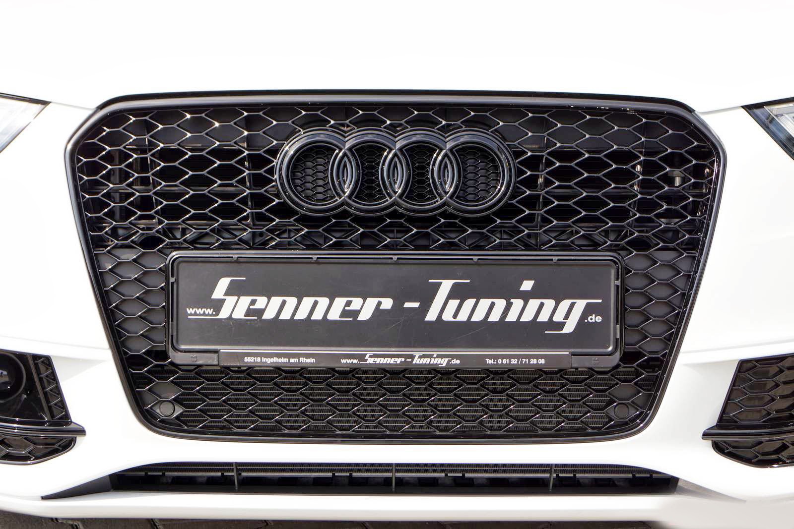 該車以冰山般的潔白為其塗裝,Senner了解在這樣的夏日中,不能只注重動力,而更要注意外觀,有時外觀需求甚至來得比動力高,因此他們在這RS5上所做的有許多,車頭遮罩、霧燈、更包含出現在車輛前後的Audi標誌更是最顯眼的精品代稱。