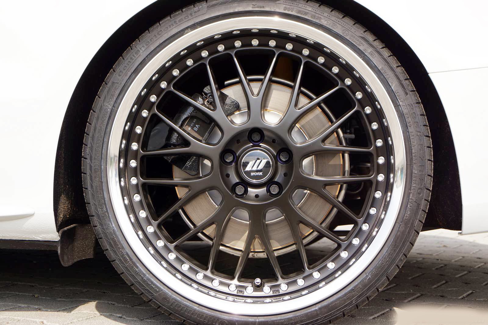 繼續說到外觀,該車使用Work VS-XX輪胎,前後輪分別為9×20與10.5×20英吋,這樣的輪胎其實是給與賽車專用之輪胎,為了更好的操控與駕駛表現,他們在避震系統的部份採用高低阻尼可調的避震系統。