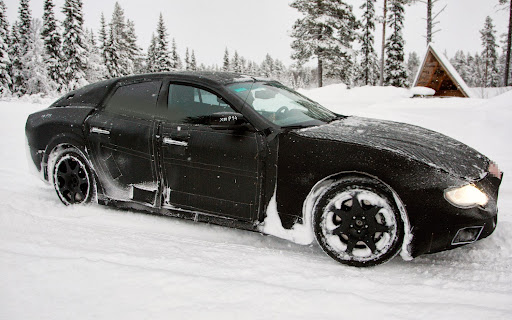 另外有謠言傳出,Maserati將會使用AWD系統與V-8引擎搭配,截至目前為止一切都是也許,確切的數據都還是未公布,但是的確該車市很有可能與Quattroporte擁有相同的動力輸出表現。 他在雪地中的模樣雖然批著厚重偽裝使得我們看得不是太清楚,單仍可以清楚感受他的容貌肯定很特殊,就讓我們靜靜期盼。