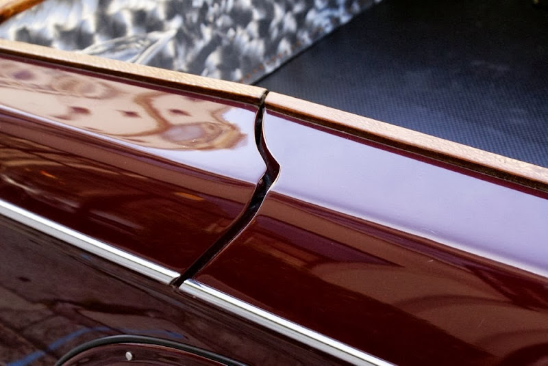 這些照片係由國外媒體Carscoops所拍攝,能感覺得出這部BMW 1600得到主人的特別照料,進行切割過後的車身鈑件保持得相當完整。在車身B柱部分,加裝防滾架,並且於後輪貨斗部分進行魚鱗點焊工程,增進車身剛性。除此之外,車身採用棗紅色塗裝,搭配實木飾板後,營造出相當復古的特殊風格。