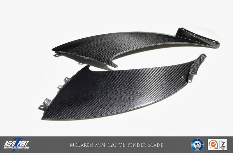 對於英國超級跑車McLaren MP4-12C,RevoZport早在它開始交車後沒多久便推出碳纖維套件,而最近則是發表更齊全的部品,包含全新設計的前保桿、碳纖維側裙組、煞車通風管與後保桿飾板等套件,其中前保桿的造型與McLaren原廠MSO ( McLaren Special Operations )部門所設計的款式有些許相似。