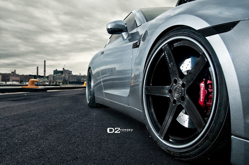 這是一部2008年款式、小改款前的Nissan R35 GTR,搭載3.8升雙渦輪增壓六缸引擎,最大馬力為480HP,最大扭力有60kgm,表現已屬強悍。車主更透過電腦程式的改寫、進氣系統的強化與排氣管的換裝,將最大馬力提升至650HP的境界。外觀方面,改裝店家在與車主溝通後,將原廠尾翼拆除,前、後側燈與尾燈部分施以燻黑處理,並且將車頂與後保桿局部貼上黑色貼膜。輪圈部分,選用知名品牌D2 Forged Wheels出品、型號CV2的大內凹款式,簡單的五爪設計配上中心黑色、外圈拋光的塗裝,與鐵灰色車色相呼應,輔以高低軟硬可調式避震器組的加裝,讓車身降得低趴,呈現出多層次感的視覺效果。