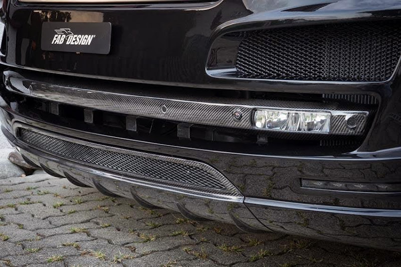 如各位於照片所見,這部體型不小的休旅車換裝由碳纖維材質打造而成的空力套件,包含全新設計、附上LED日行燈的前保桿、新型後保桿、增加寬度約60mm的寬車體輪弧套件與特別訂製的排氣管尾段。輪圈部分,FAB Design Range Rover Noreia用上尺寸為23x11J、造型擁有FAB Design血統的輪圈,搭配315/25R23的大尺寸休旅車專用跑胎。
