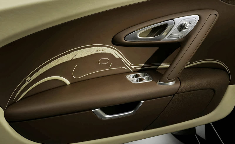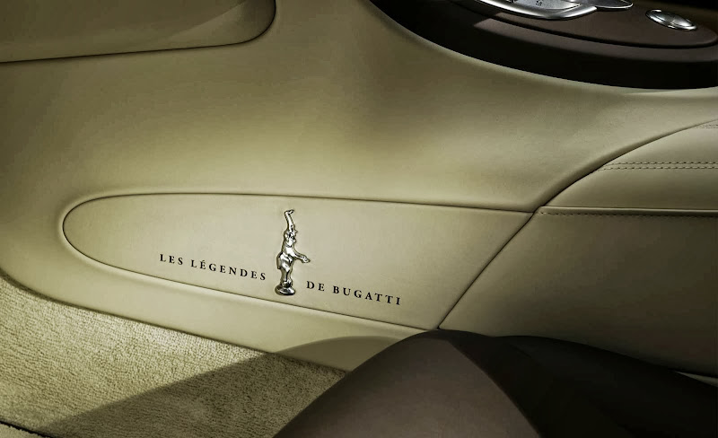 內裝方面,Bugatti Veyron Vitesse Legend Edition "Jean Bugatti"配有全車真皮內裝與跟經典車款Type 57SC相同的咖啡色木質飾板,而座椅、中控台、方向盤、門板與儀錶板周邊全部以巧克力色處理,更象徵著Bugatti無與倫比的傳奇色彩。動力方面,Bugatti Veyron Vitesse搭載8.0升W16渦輪增壓引擎,最大馬力為1,200HP,於3,000至5,000rpm間可以爆發出超過151.2kgm的最大扭力,百里加速僅需2.6秒,目前堪稱地表上最速敞篷車款。