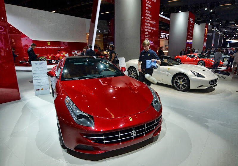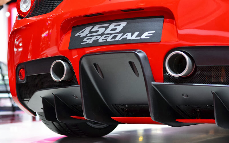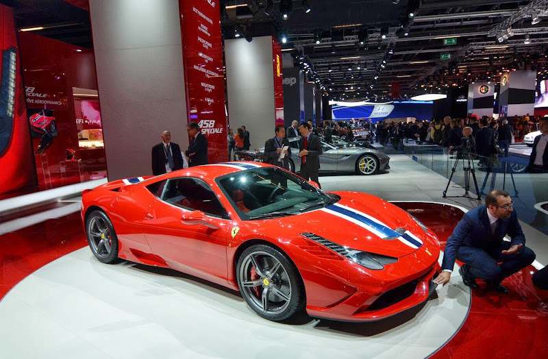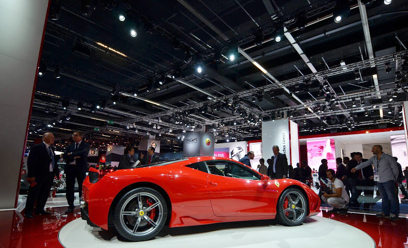 因此,法蘭克福車展對全球各大車廠可說是非常重要的關鍵活動,百家爭鳴、爭奇鬥艷、高潮迭起。今年的法蘭克福車展中,來自義大利(Italy)的超級跑車廠Ferrari端出各式精采車款,其中更以Ferrari 458 Speciale的正式發表最為車壇矚目。Ferrari 458 Speciale搭載4.5升V8自然進氣引擎,成功地將最大馬力提升至605HP的境界,再透過輕量化工程甩去195kg而達到1,290kg的重量,百里加速僅需3.0秒。除了性能強悍外,車展現場Ferrari也另闢專區解說458 Speciale的空力套件設計原理與引擎飾蓋的噴砂製程技術等資訊。