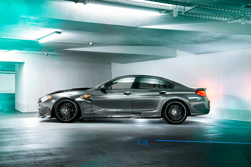 眼前這部是以BMW 6系列Gran Coupe為基礎的改裝車型,換裝全新款式的空力套件,包含前保桿、側裙組、寬車體輪弧套件與後保桿等部品,而開孔式碳纖維引擎蓋與整合於後保桿的排氣管尾段也是Hamann Mirr6r的特色焦點,放射狀的Hamann Anniversary輪圈依舊散發出濃厚的品牌風格。動力部分,Hamann針對BMW 6系列Gran Coupe旗下六缸渦輪增壓的640i、八缸渦輪增壓的650i與性能旗艦車款M6等不同動力配置皆提供升級套件,從350HP、480HP至700HP的選擇都俱全。車身部分,Hamann採用亮眼的電鍍鐵灰色塗裝以呼應他們所取的名稱: Mirror!