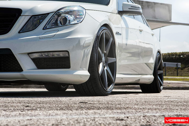今天為各位介紹的這部W212型Mercedes Benz E63 AMG便屬於小改款前的車型,車主選用知名品牌Vossen Wheels出品、型號VVS CV7的輕量化輪圈,另外將全車原本鍍鉻的窗框、水箱罩、葉子板6.3 AMG字體與後廂蓋飾條等配件施以黑色處理,與槍灰色塗裝的輪圈形成強烈卻順眼的視覺對比。於是,代號M156的自然進氣引擎,在如此動感有型的E63 AMG懷裡,成為永遠的經典。