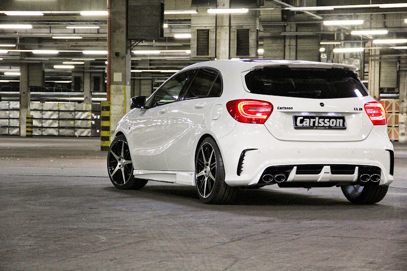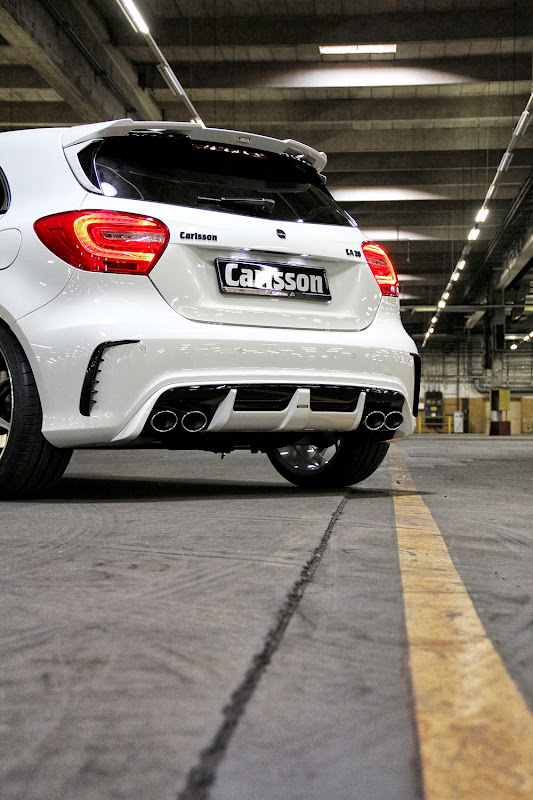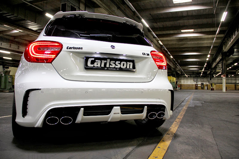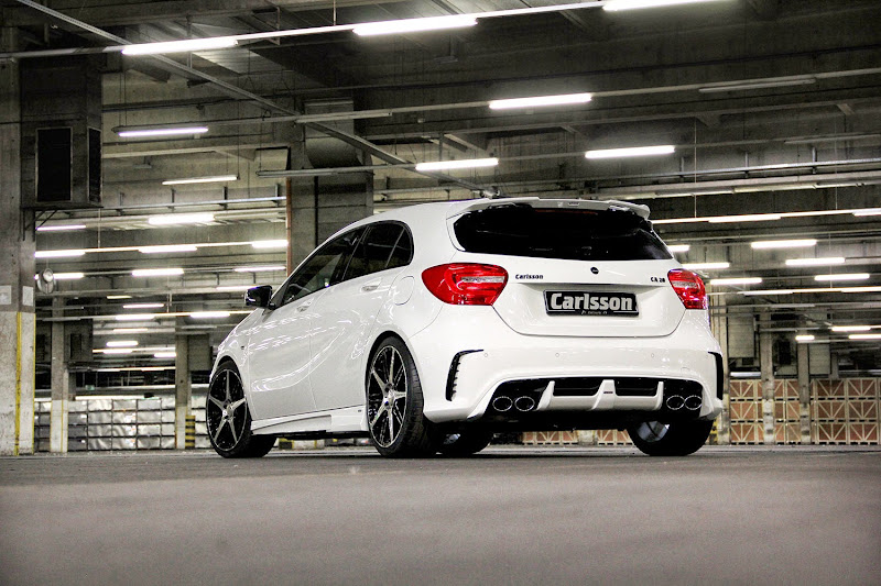 外觀方面,Carlsson發表了一款同時適用於標準版本空力套件與AMG空力套件的前下巴、全新設計的側裙組、後下擾流板與造型特殊的後尾翼等部品。底盤方面,Carlsson提供Mercedes Benz A系列專用的高低、軟硬可調避震器組,輪圈則有18吋、19吋與20吋等三種選擇,材質分為鑄造與鍛造版本。動力方面,取名為Carlsson C-tronic CB Plug的動力升級套件能將Mercedes Benz A200由原廠的156HP、26.2kgm提升至187HP、31.2kgm;至於動力較強的Mercedes Benz A250,最大馬力則是由211HP增強至253HP,扭力峰值也從36.1kgm提升至43.3kgm。當然,先前所報導、適用於Mercedes Benz CLA45 AMG的450HP動力套件同樣也能植入A45 AMG當中,強悍的超級鋼砲又多一台!