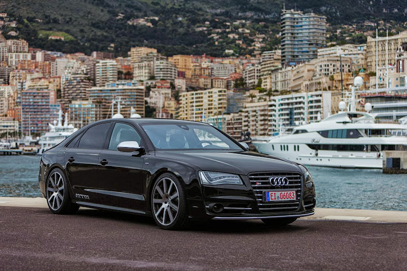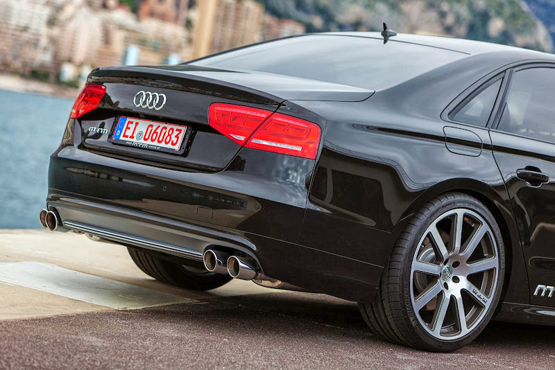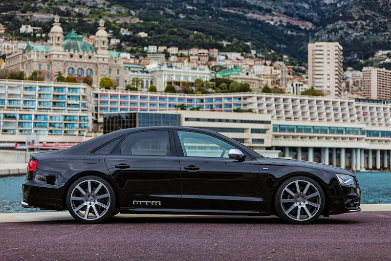 身為Audi車系改裝界中的知名品牌MTM也在第一時間推出Audi S8的改裝套件。外觀方面,僅換裝MTM多幅式鍛造輪圈與短彈簧。動力部分,MTM透過電腦程式的修改、進氣系統的強化與排氣管的換裝,將最大馬力增加130HP而來到650HP的境界,扭力也增強了16.2kgm而達到82.5kgm的峰值,使得這部豪華房車的百里加速成績挺進至4.0秒,極速則是因為電子限速的關係而被控制在293km/hr。看來,VAG新世代4.0升TFSI引擎的改裝潛力無窮!
