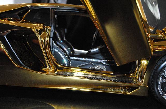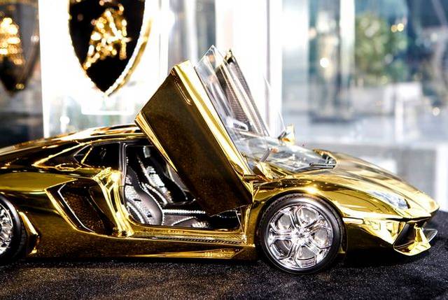 原來,這部重達25kg的模型車採用純金打造,由一顆重達500kg的純金石雕刻打造而成。 內裝方面,每張座椅上面都鑲有700顆小鑽石,頭燈與尾燈則是由鑽石精密雕刻而成。