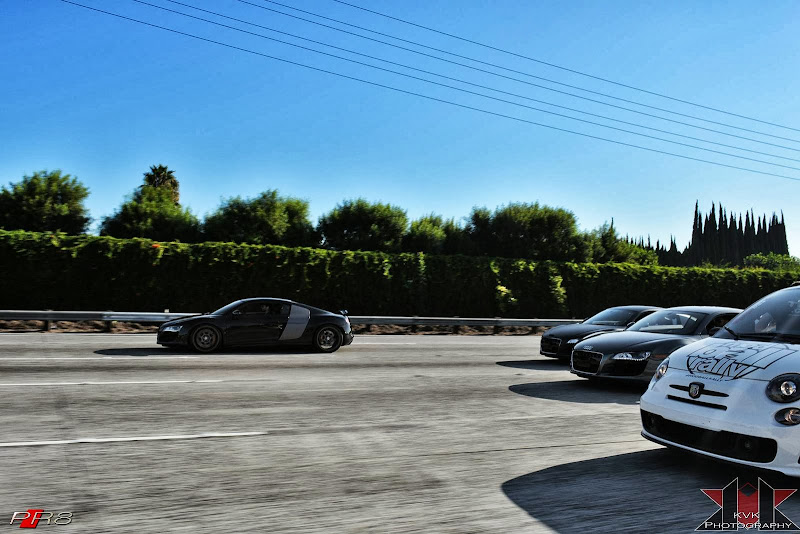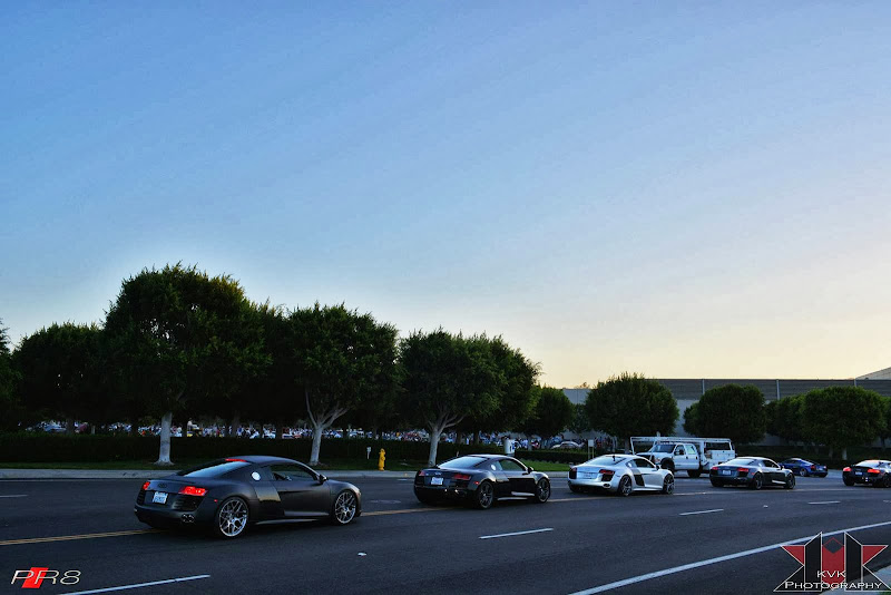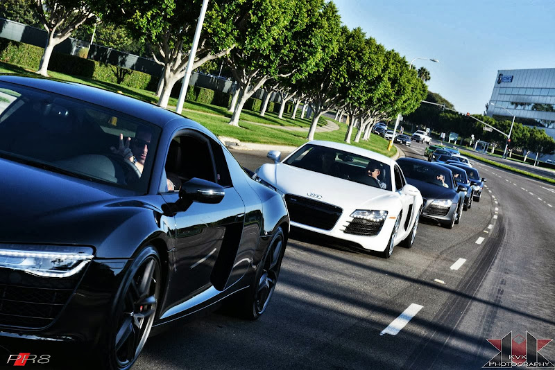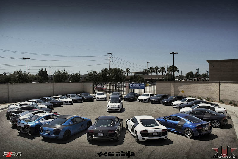 Project R8與攝影團隊KVK Photography、Alex Berman Photography共同記錄了這次盛大活動。從早上6:30開始,總計16部Audi R8、一部Audi RS5、Ferrari Challenge Stradale與新款Range Rover等稀有車款便於加油站集合,並且由貼膜專業廠Protective Film Solutions贊助所有車輛彩繪,同時設計了PR8&Prime字樣的貼紙,在大夥前往Cars and Coffee Irvine之前,全部貼在車上妝點完畢。