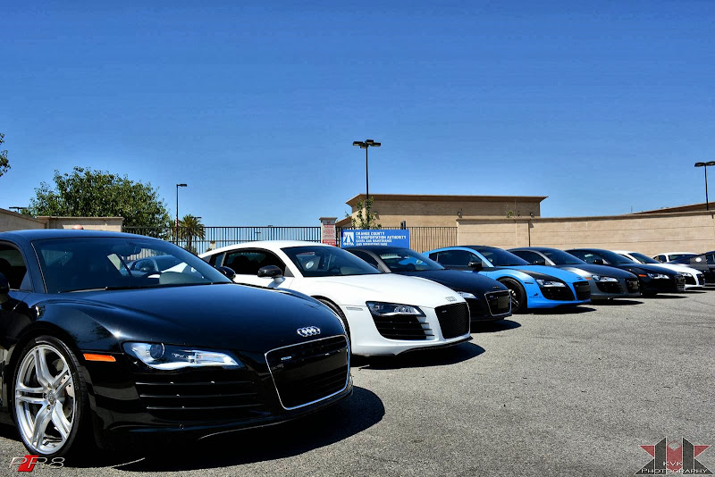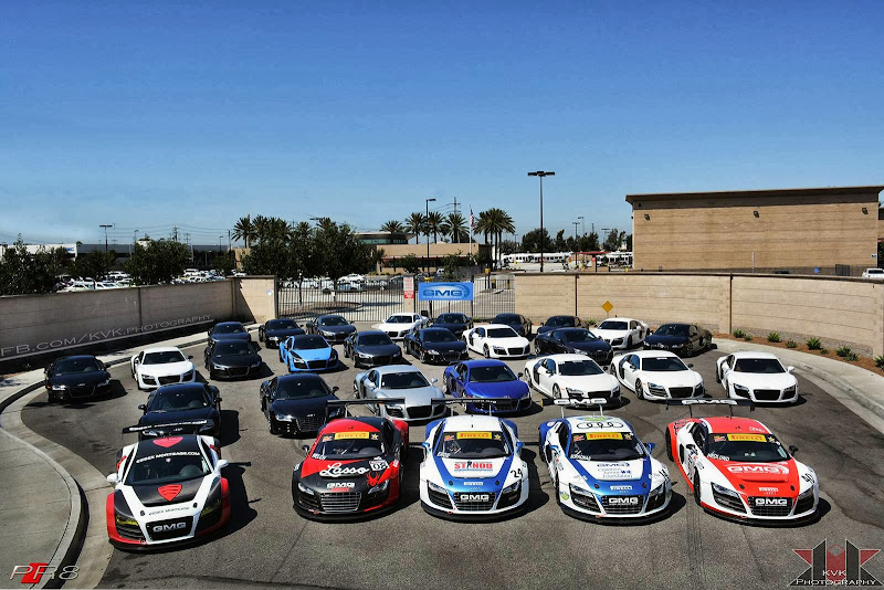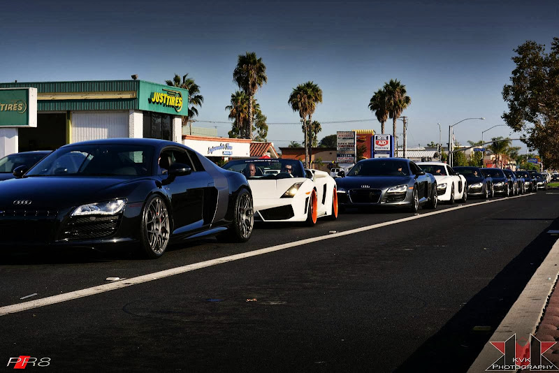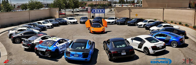 我們剛過完中秋節,而有為數不少的Audi R8們也一同慶團員,在美國(USA)有一群對愛車熱情無比的Audi R8車主們共同組成了名為Project R8的團體,並且每隔數月便會舉辦名為 " GTG (Get ToGether)"的大型車聚活動。第一屆GTG車聚活動從Cars and Coffee Irvine開始,然後團員們偕同共進早餐,隨後由國際賽車團隊GMG Racing主持直到落幕。第二屆GTG活動則是包含午餐聚會、電影鋼鐵人三(Iron Man 3)觀賞會與在聖地牙哥(San Diego)著名的美式餐廳Burlap舉辦的晚宴等活動內容。