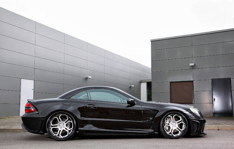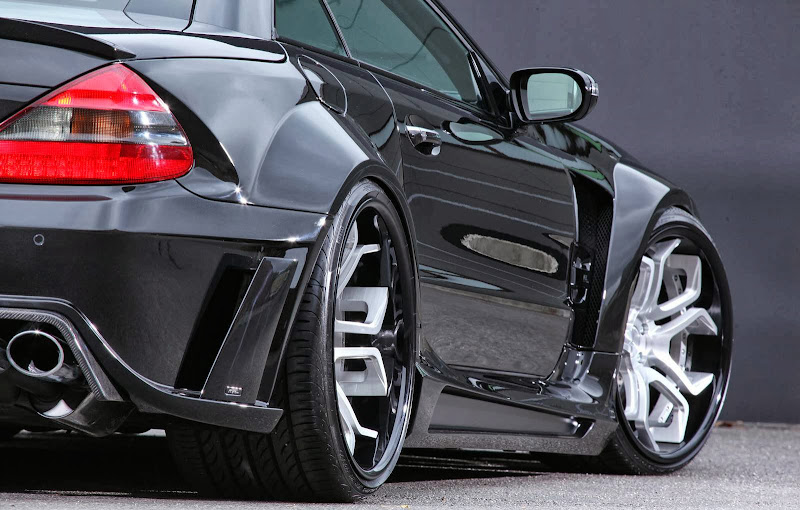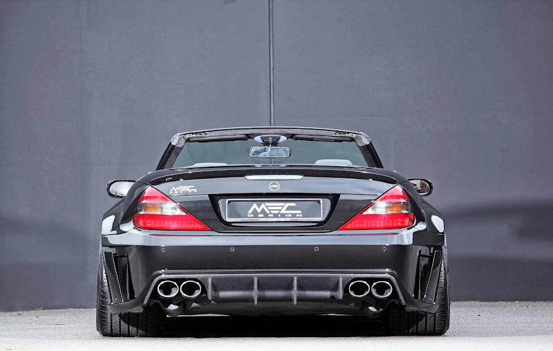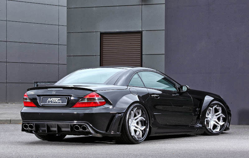 雖說目前Mercedes Benz旗下的旗艦敞篷跑車SL車系已經出到R231的世代,但是改裝名廠MEC Design依舊找來上一代R230型Mercedes Benz SL63 AMG進行改裝大工程。如同各位眼前所見,裝上MEC Design寬車體套件的這部黑色Mercedes Benz SL63 AMG,氣勢與終極版本SL65 AMG Black Series相比,毫不遜色。動力方面,這部2010年款式的Mercedes Benz SL63 AMG搭載將來難有的6.2升V8自然進氣引擎,最大馬力為525HP,輔以AMG Speed Shift七速手自排變速箱與64.2kgm的強大扭力,百里加速僅需4.5秒,表現可圈可點。因此,MEC Design這次並未針對動力部分大刀闊斧,主要以外觀套件為主。