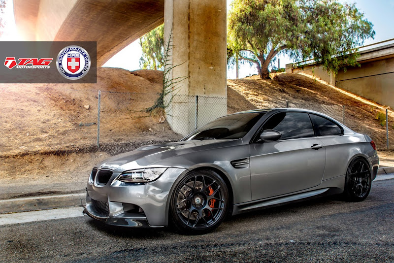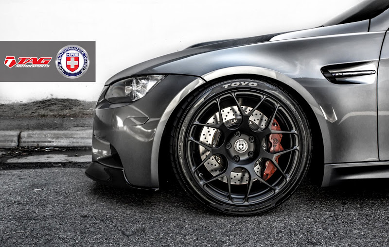 今天帶給各位的是一部由改裝名廠TAG Motorsports所操刀改裝的BMW E92 M3雙門跑車。動力部分,TAG Motorsports修改電腦程式ECU、換裝Gruppe M碳纖維進氣系統與KKS鈦合金排氣管,將最大馬力由原廠的420HP提升至450HP。外觀部分,店家選擇維持素雅,僅加裝碳纖維前下巴與後下擾流板,並且將隔熱紙貼得暗黑,散發出隱約的殺氣。輪圈方面,選用知名品牌HRE Performance Wheels出品、型號P40S的黑色塗裝輪圈搭配日本Toyo高性能跑胎與Brembo GT前六、後四活塞煞車系統,並且換裝KW V3高低軟硬可調避震器將車身降低,讓這部鐵灰色塗裝的德國雙門跑車,即便是在路旁休憩,依舊氣勢震天。