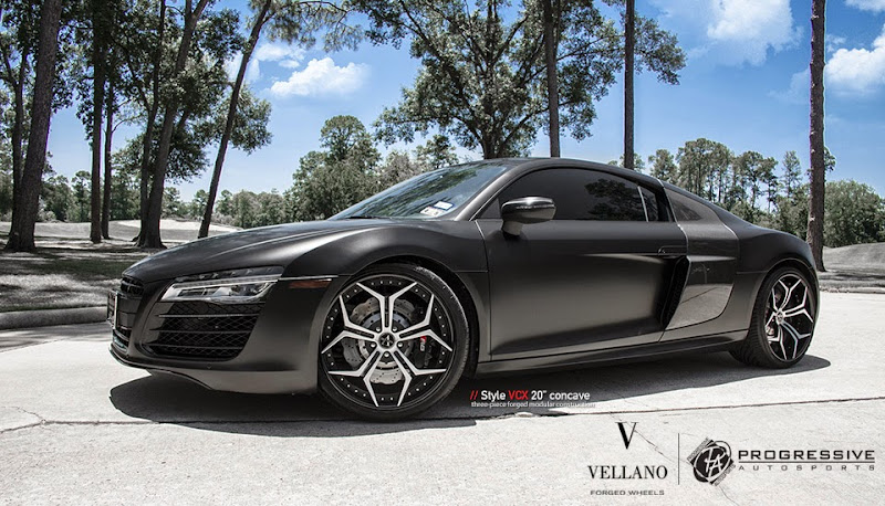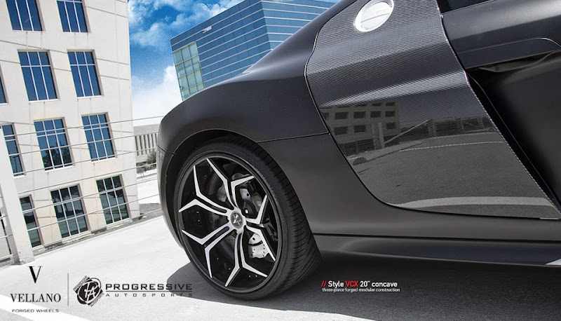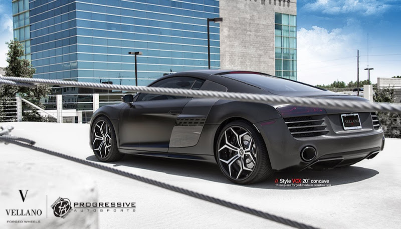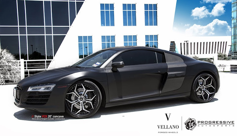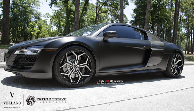 眼前這部消光黑色塗裝的Audi超級跑車便是最新款式的Aui R8 V10 Plus,由於該車原廠所配的輪圈款式與舊款相同,因此車主在交完車的第一時間便前往改裝店家尋求解套。最終,車主選用知名品牌Vellano Wheels出品、型號VCX的內凹款式輪圈,尺寸為前20x8.5J、後20x11J的設定,與消光黑色的圓潤車身搭配,營造出另類的超跑氛圍。