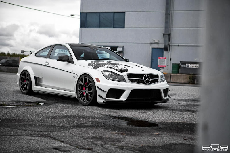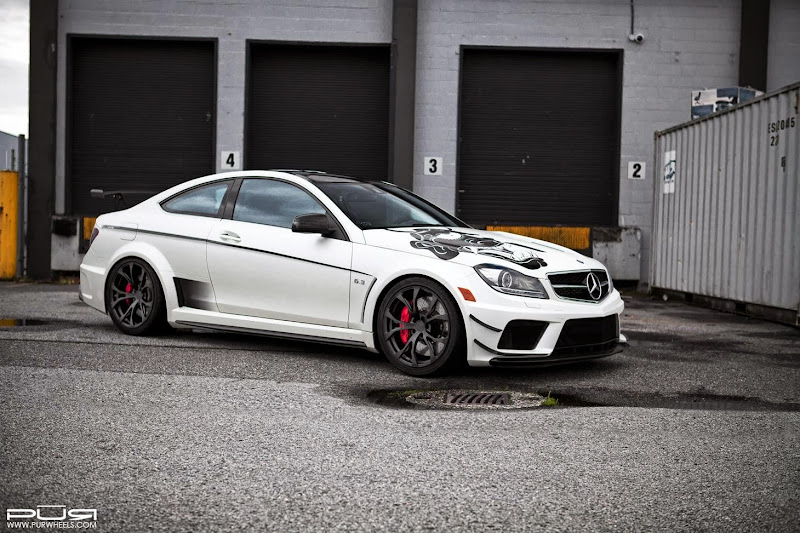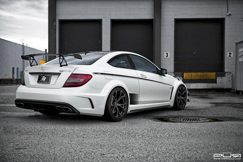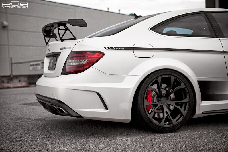 外觀方面,Mercedes Benz C63 AMG Coupe Black Series擁有專屬AMG寬車體套件、前保桿、側裙組、尾翼、後保桿與SLS AMG GT3相同的黑色後下擾流板等部品,而專屬的碳纖維前定風翼與造型特殊的四出鍍鉻排氣管更是驗明正身的細節。然而,對於眼前這部白色Mercedes Benz C63 AMG Coupe Black Series的車主而言,原廠賦予的霸氣外觀依舊不足,因此找上改裝店家換上知名品牌PUR Wheels的輪圈配上日本ADVAN Neova AD08高性能跑胎,並且選用KW V3高低、軟硬可調避震器將車身降低,連同簡單的車身彩繪貼紙,使得這部Mercedes Benz C63 AMG Coupe Black Series渾身散發出濃烈、野蠻的暴力風格。