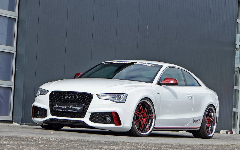 改裝名廠Senner Tuning針對小改款Audi S5 Coupe雙門車型進行一系列改裝工程,透過電腦程式的改寫、Injen進氣系統的加裝與高性能排氣管的換裝,從這具3.0升V6機械增壓引擎壓榨出455HP的最大馬力,扭力也達到52.3kgm的境界。除了動力部分的精進外,Senner Tuning也在外觀方面有所更動,整車採用暗紅色元素作為點綴性妝點,換裝全新設計的空力套件,包含附有碳纖維飾板的前保桿、碳纖維後視鏡蓋、碳纖維側裙組、經過細微修改的後保桿與後下擾流板等部品,輪圈部分則是選用知名品牌Work出品、型號Varianza T1S的20吋款式並且施以局部暗紅色塗裝處理。內裝方面,Senner Tuning換裝新型方向盤、碳纖維內裝飾板、腳踏墊與鋁合金腳踏板組。
