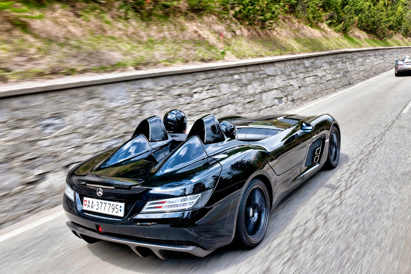 今天帶給各位的是一群SLR出遊的精彩畫面,車隊成員更是幾乎囊括了所有SLR車型,包含SLR McLaren、敞篷版本SLR McLaren Roadster、SLR 722 Edition與SLR 722 S敞篷版本等,而最引人注目的莫過於全球限量僅75部、沒有前擋風玻璃的SLR Stirling Moss,而且還是以少見的黑色塗裝現身! 另外,於2010年底時,原本宣布停產的SLR McLaren再次進行僅25部的限量生產,取名SLR McLaren Edition,配有全新打造的前保桿、後保桿、水箱罩與後下擾流板等,排氣管、方向機與避震系統也經過修改,成為最終版本SLR! 畫面中這些乃當地SLR俱樂部成員的車,而隸屬於俱樂部的SLR車輛數超過100部,並且最近成群參加於阿爾卑斯山(The Alps)舉辦的Tour Des Alpes活動,攝影師礙於環境限制,僅分享幾張精美照片,而我們也不難想像現場的壯觀程度。